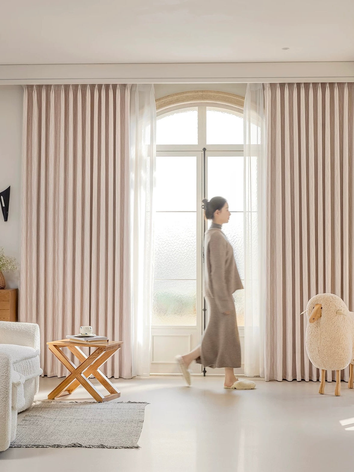光を受けるたびに陰影が生まれ、空間に穏やかなリズムをもたらします。