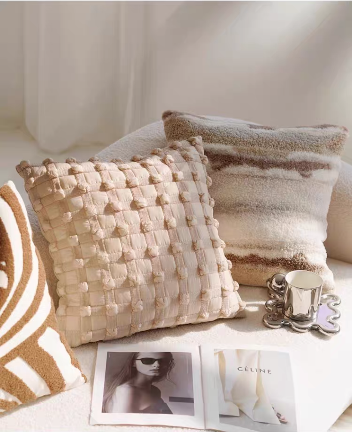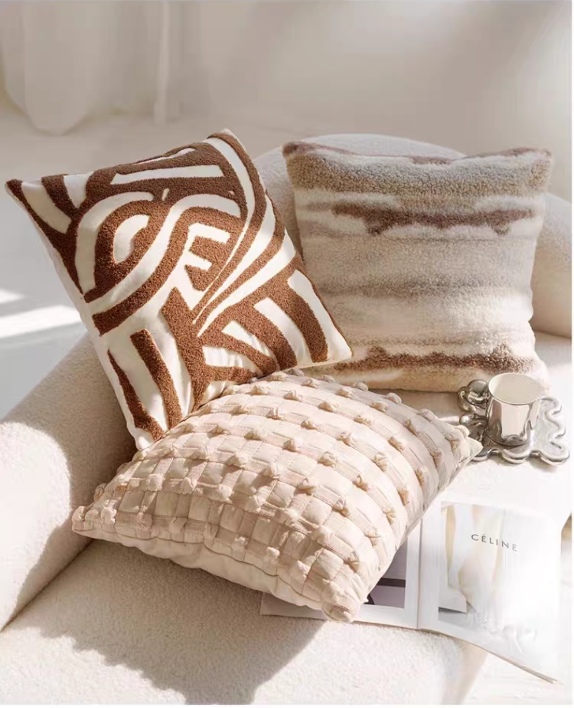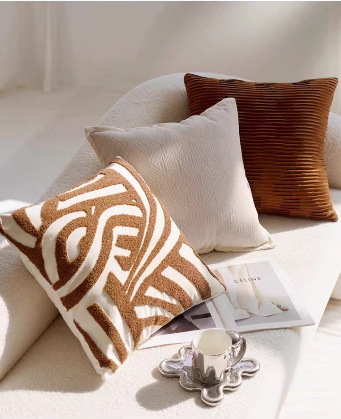 メイラードシリーズのクッションは、秋冬の深まる色合いをまとったやさしい表情。