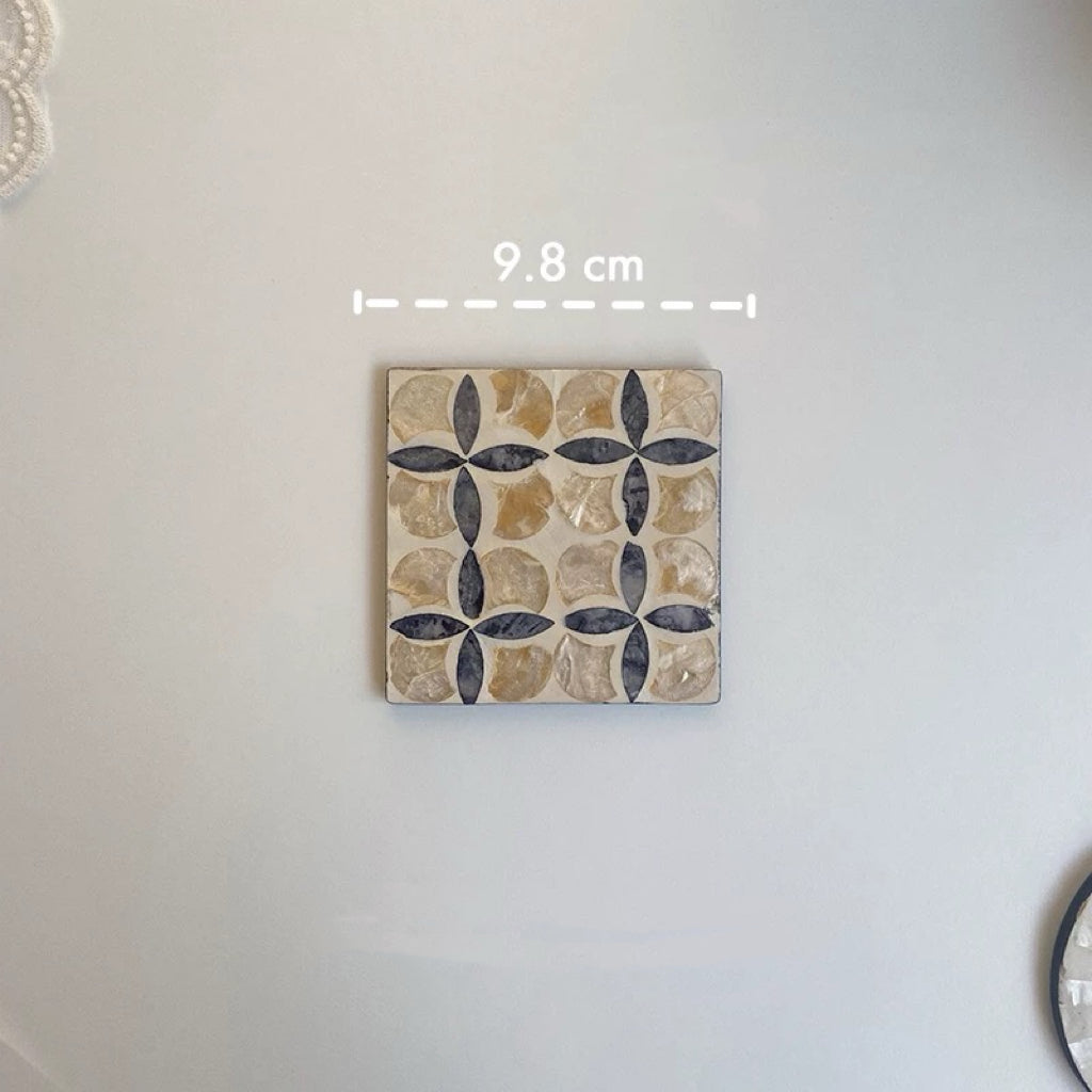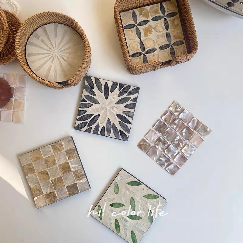 海の恵みである天然の貝殻に彩りを添えたハンドメイドコースター。